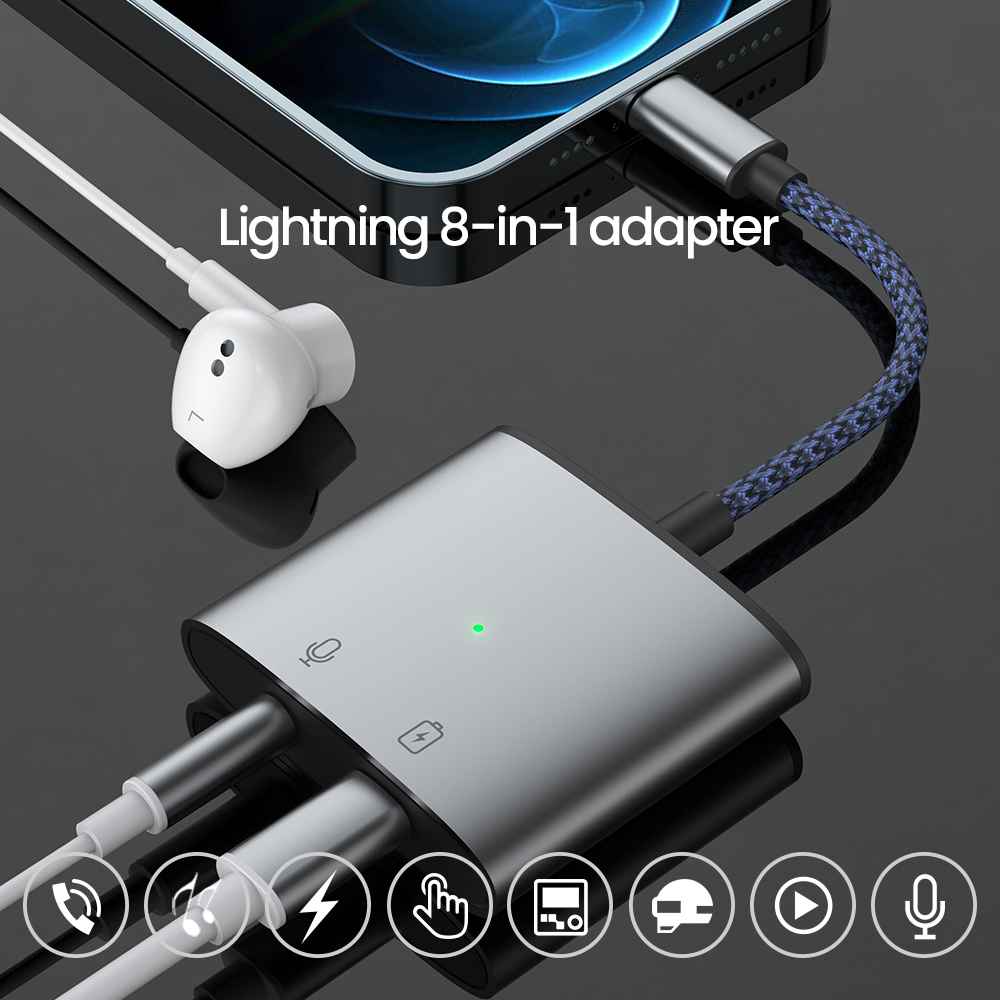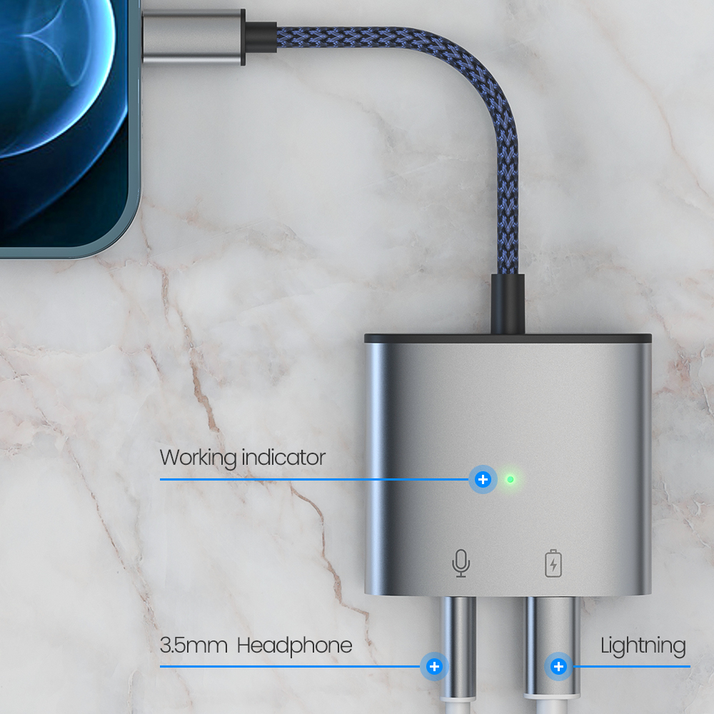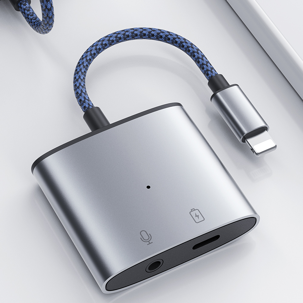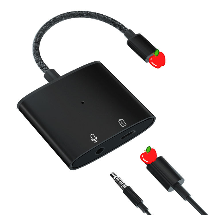 3. Apple original female base, lightning to 3.5mm AUX+charge